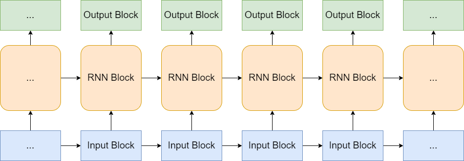 没有错!序列是变长的,但是,我们可以将序列拆成等长的小块,然后进行分块处理。处理完每一个小块后,输出两个东西,一个是呈现给用户的、作为结果的输出;另一个是传递给下一时间步,处理下一个小块的信息。