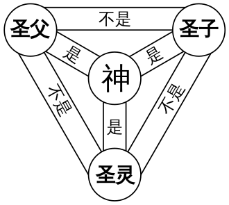 这是神学中一个极其抽象的概念,可以用下面的图示来理解: