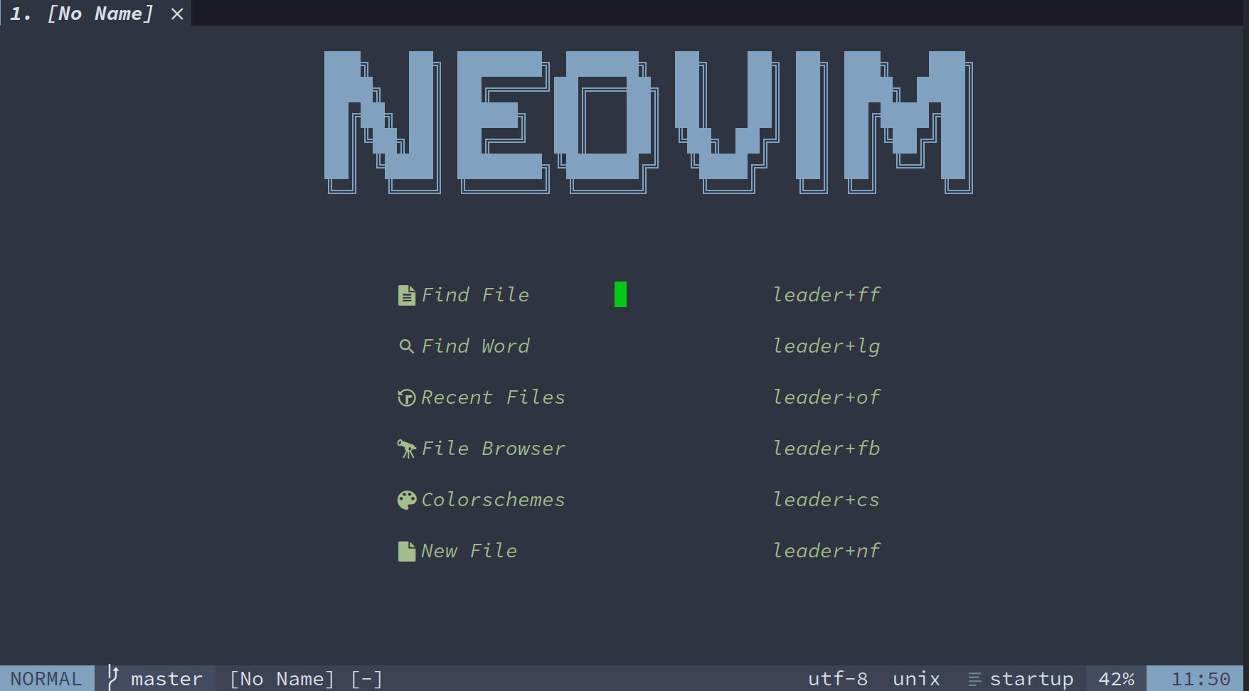 于是通过startup-nvim配置主界面,大概效果如下: