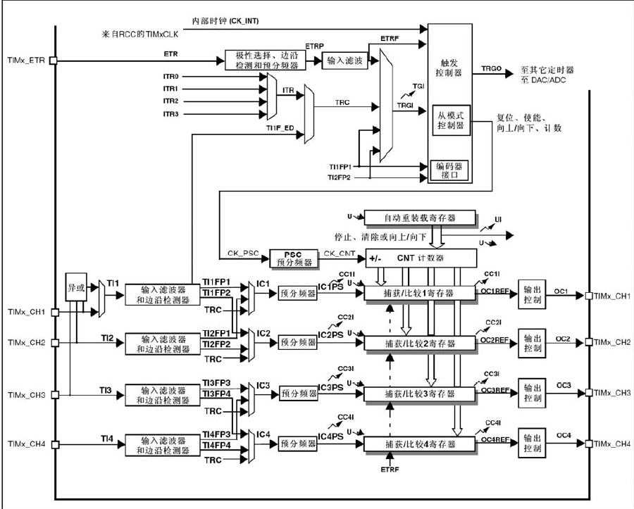 通用定时器的结构如下图所示:
